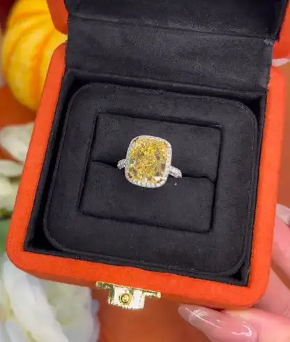 9*11 причудливая Желтая подушка и круглое лабораторное бриллиантовое обручальное кольцо с 14 карат из белого золота
