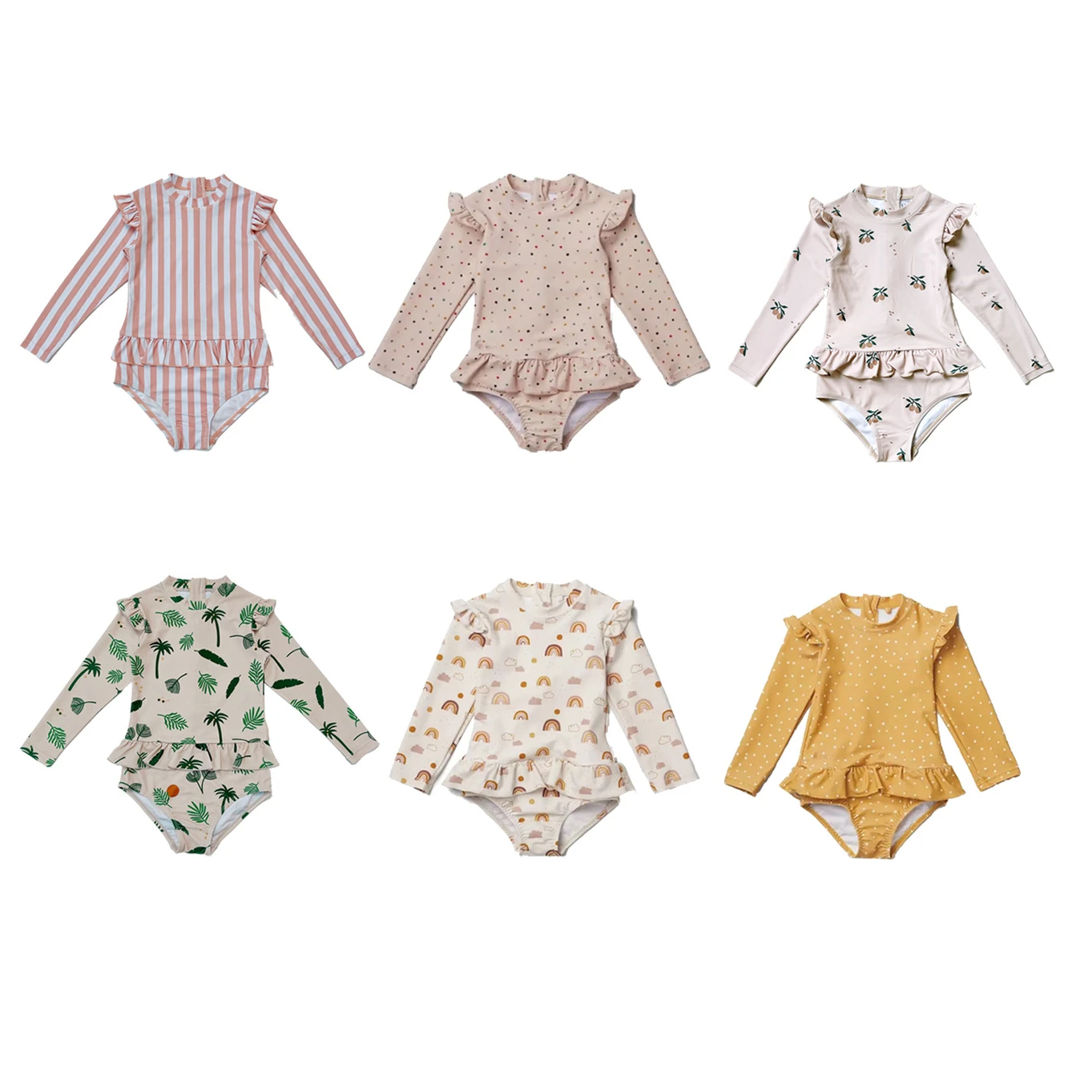 Детские купальники 2024 летние с длинными рукавами для девочек цельный Быстросохнущий купальник детей 1-6 лет солнцезащитные костюмы