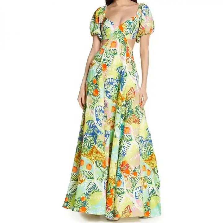 2023 Новое поступление модное женское стильное хлопковое длинное платье с пышными рукавами Платье макси принтом и цветочным