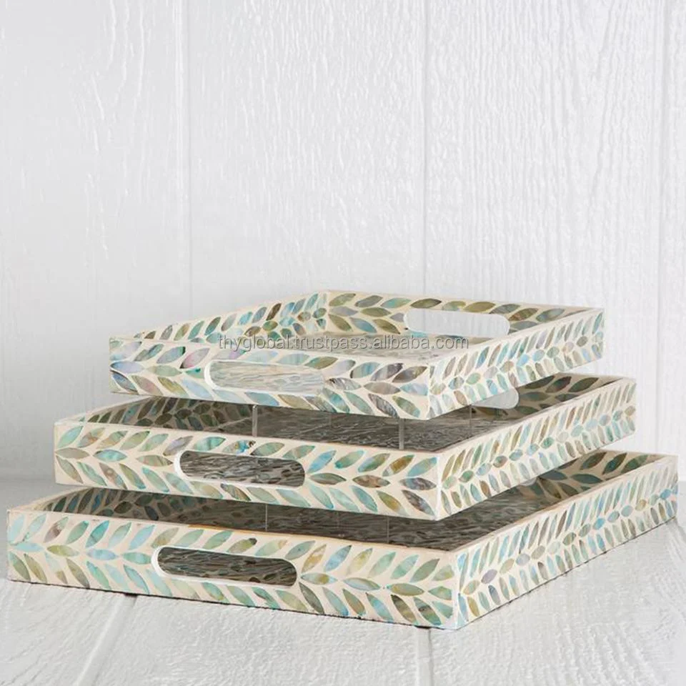 Набор из 3 прямоугольных античных сервировочных лотков с перламутровой вставкой роскошные сервировочные лотки для чая