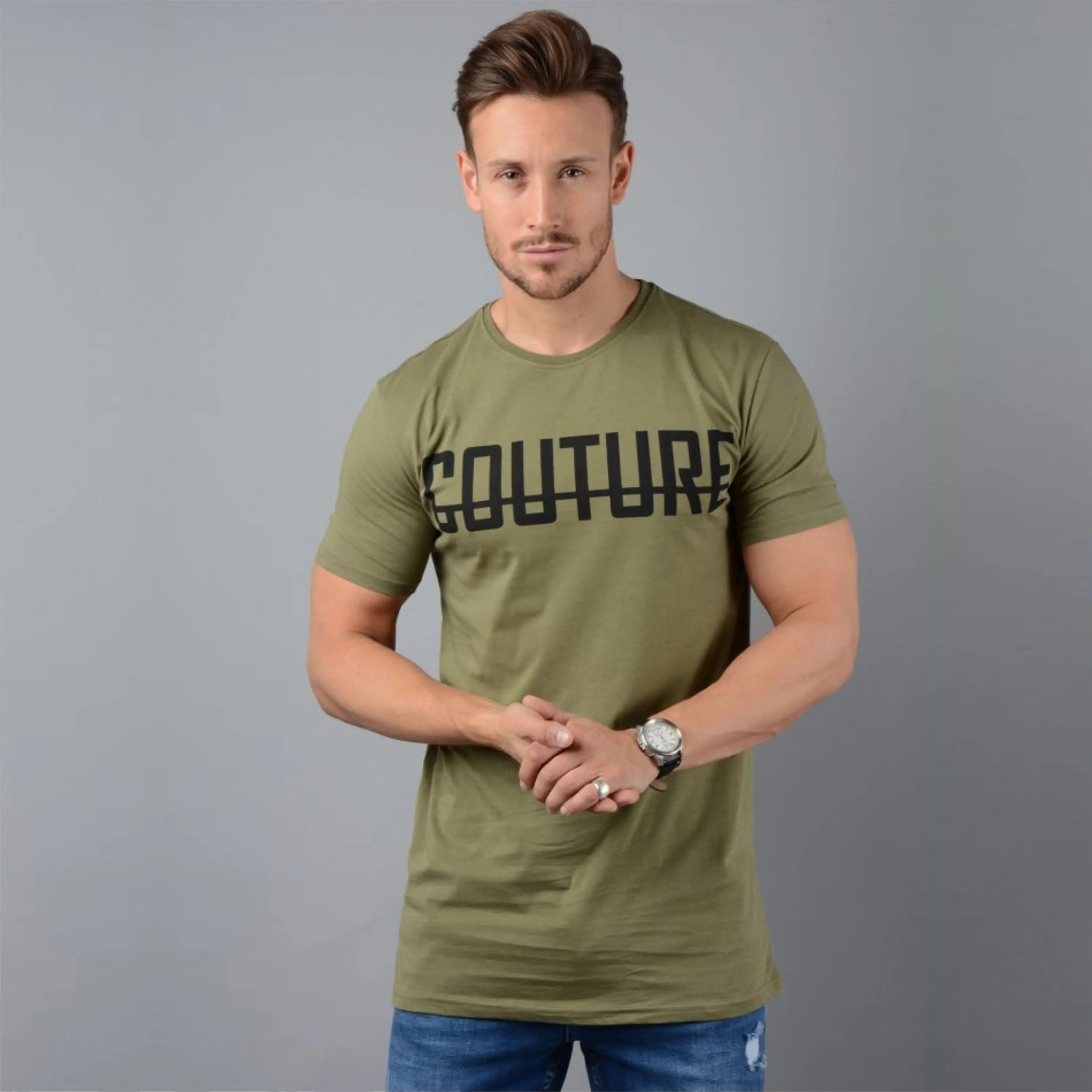 100% тонкая мужская облегающая футболка из чесаного хлопка с короткими рукавами OPtech 200 gsm