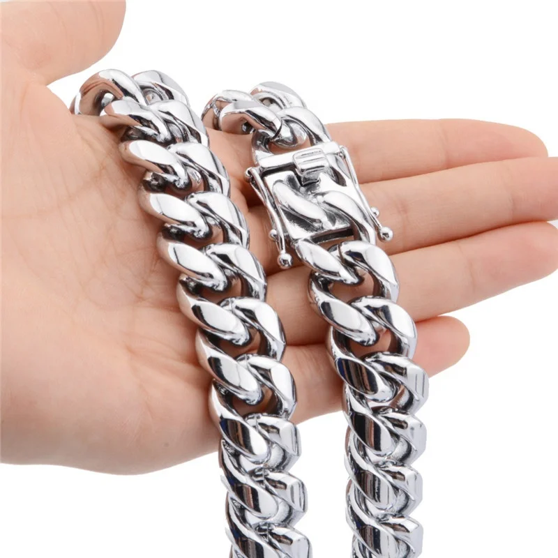 Мужская цепь Майами для мальчиков панцирное кубинское ожерелье из нержавеющей стали мужские серебряные кубинские цепи шириной 10 мм
