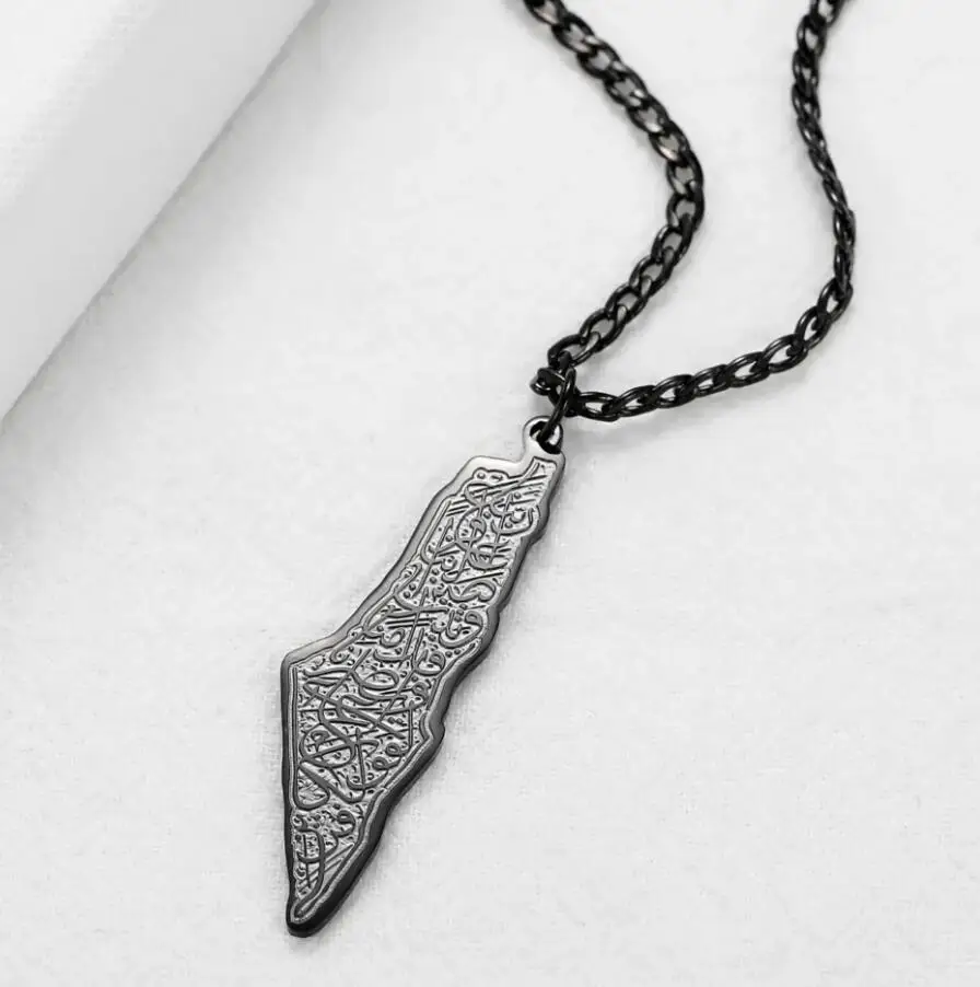 Вдохновляющие украшения из нержавеющей стали Господь сказал: О мой народ, палестин Карта Ожерелье с тисненой гравировкой Арабской каллиграфии