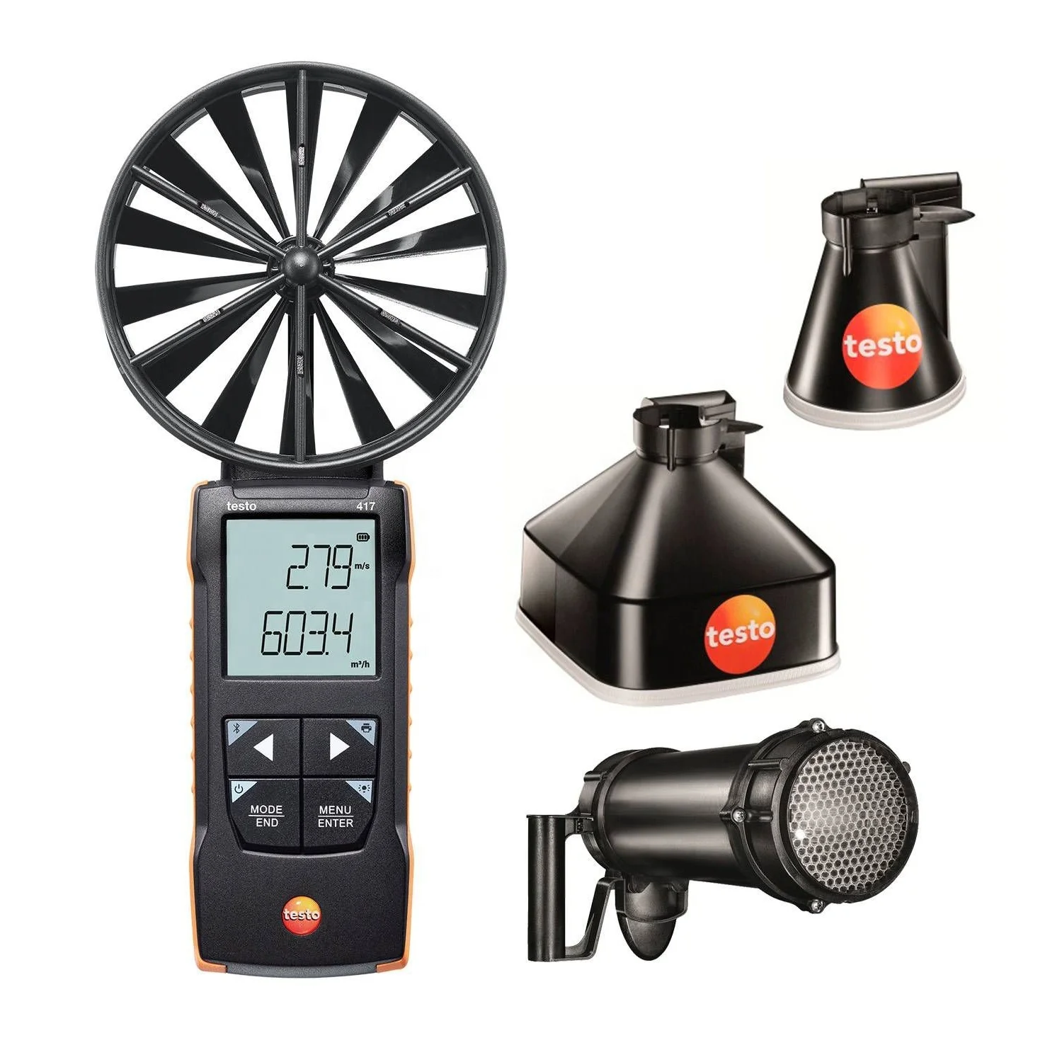 Новый Тип Testo 417 комплект 2-Лопастной анемометр с измерительными воронками и выпрямителем потока 0563 2417