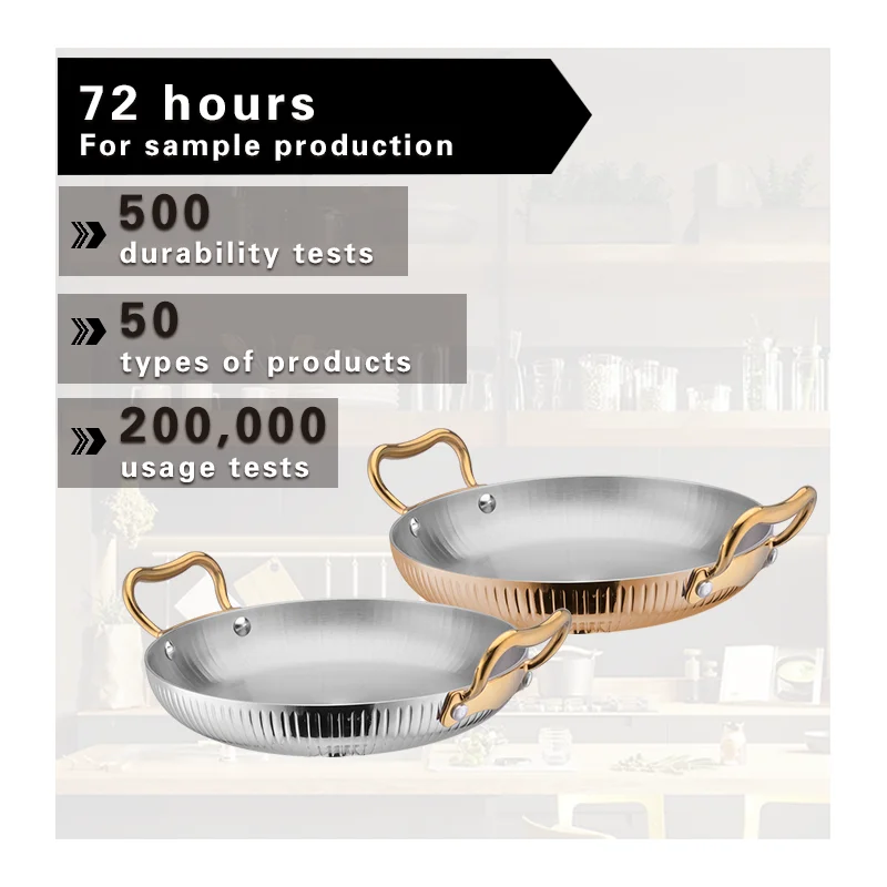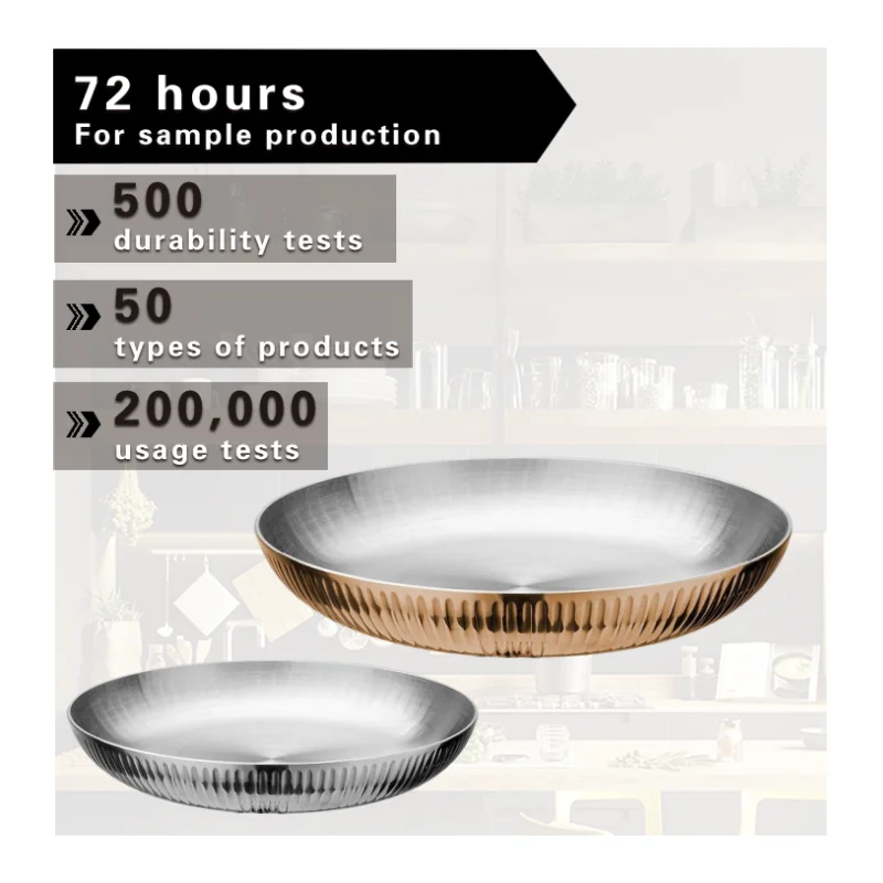 Роскошная розовая Золотая круглая вертикальная полоска с двойными ручками тарелка из нержавеющей стали для посуды ресторанного отеля