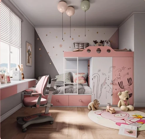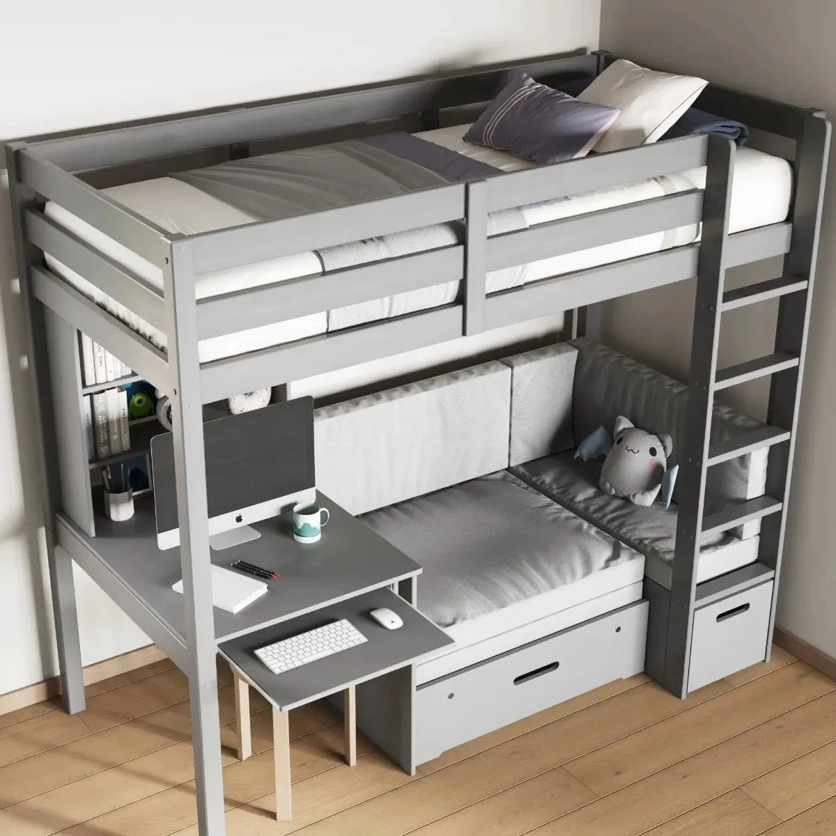 Комплект детской спальни Jiali, 2 кровати, многоярусные двухъярусные кровати, учебный компьютерный стол, шкаф для хранения лестниц, детская двухъярусная кровать