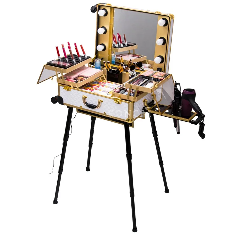 Фама фабрики профессиональная шаровая Головка из алюминия с 4 колесами макияж станция косметическая коробка красоты ящик для хранения зеркалом и