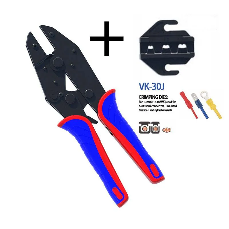 VK-30J инструмент для обжима с трещоткой 17-10AWG 1-6mm2 обжимные плоскогубцы изолированной электрической клеммы