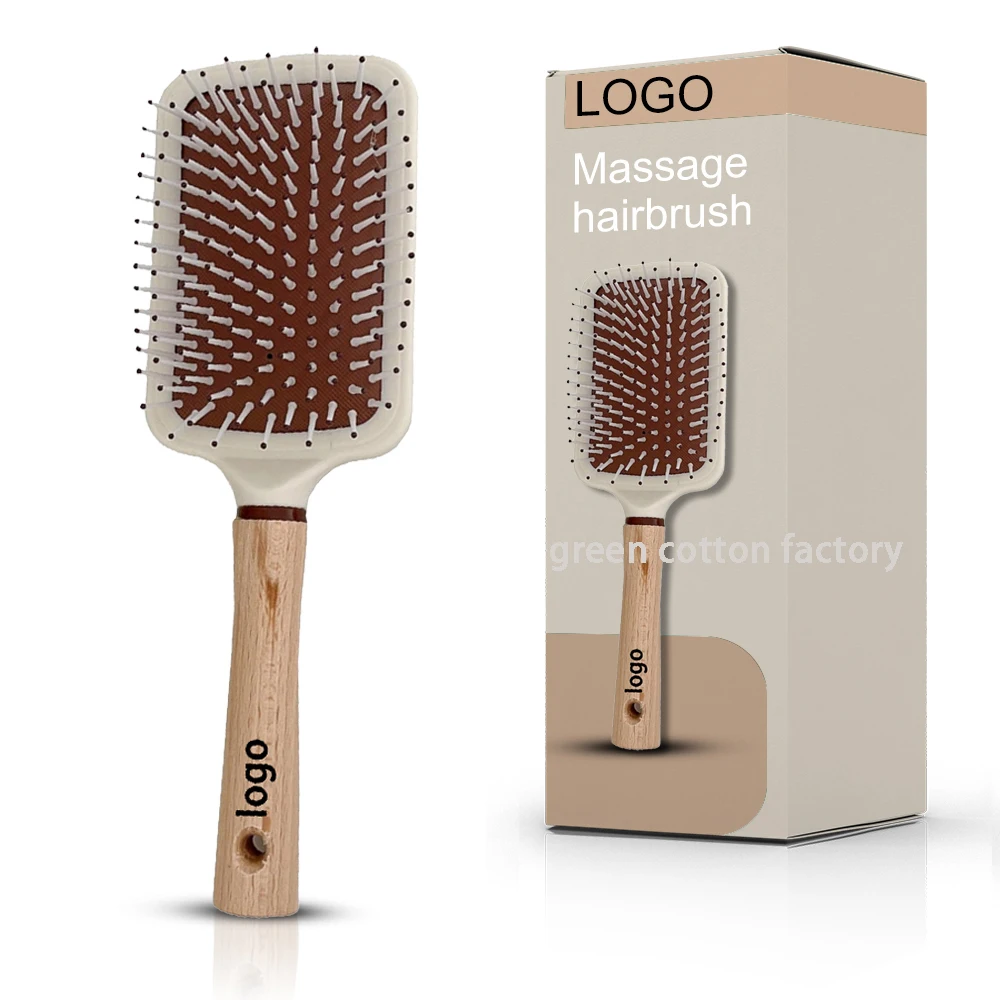 Роскошная печать логотипа для домашнего салона Большая квадратная эластичная подушка безопасности массажная весло мягкие нейлоновые зубья Женская щетка волос с коробкой