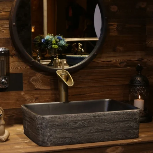 Черный гранитный столешница для умывальника раковина квадратной формы из натурального камня