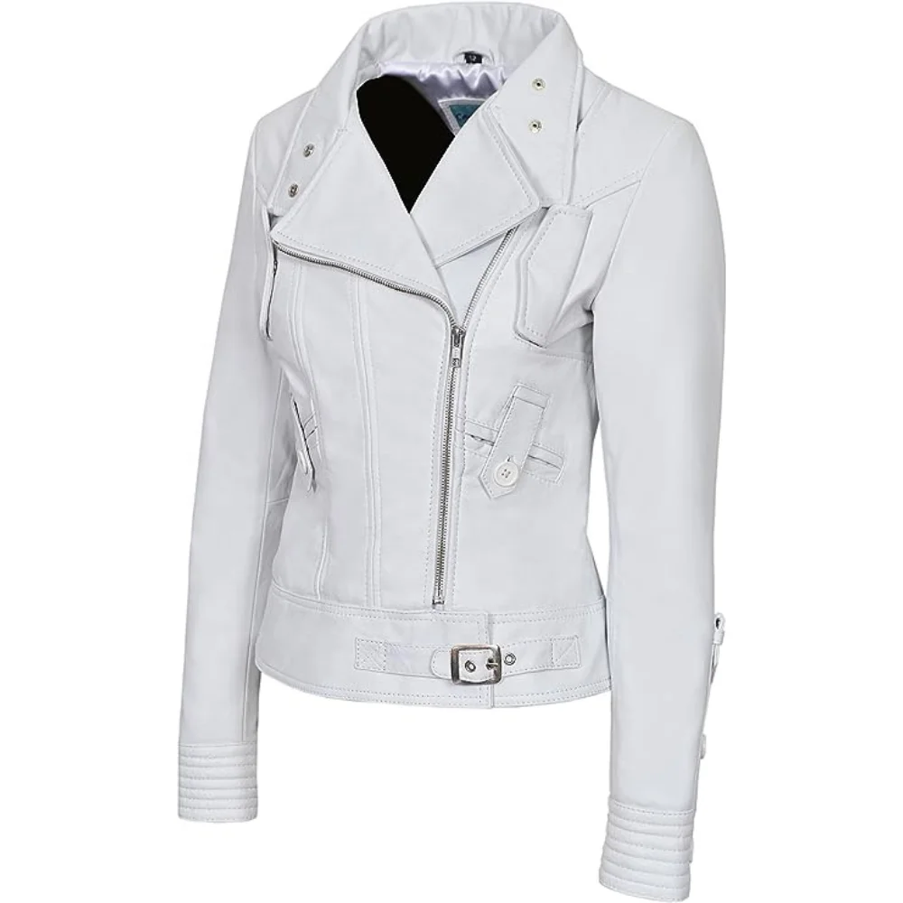 OEM оптовая продажа женская белая дизайнерская итальянская кожаная куртка в байкерском стиле натуральная Напа