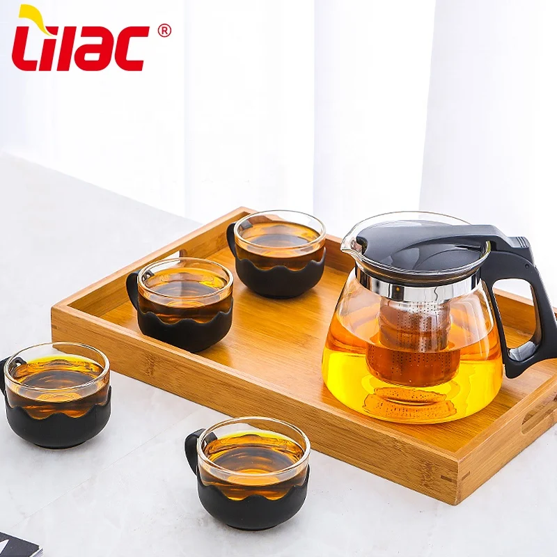 Лидер продаж, стеклянный чайник 1800 мл с бамбуковой крышкой