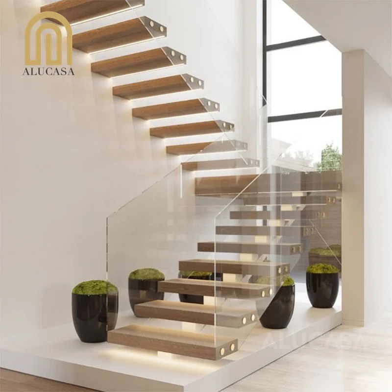 Alucasa деревянные стеклянные сборные лестницы прямые металлические дубовые