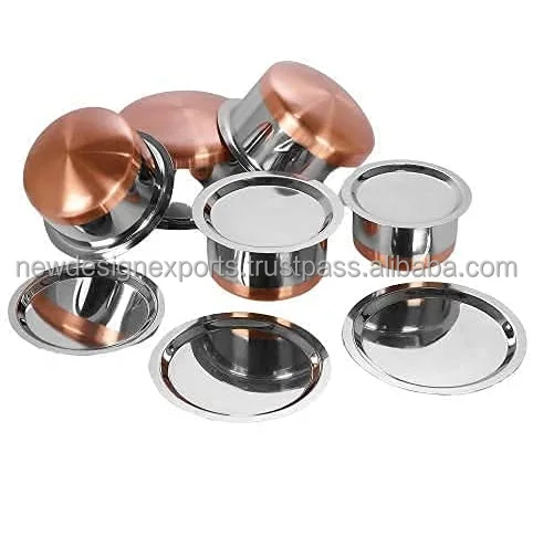 Набор посуды из нержавеющей стали с медным дном и крышкой | Контейнер Tope Patila Tapeli Handi Кухонное приготовление сервировка B