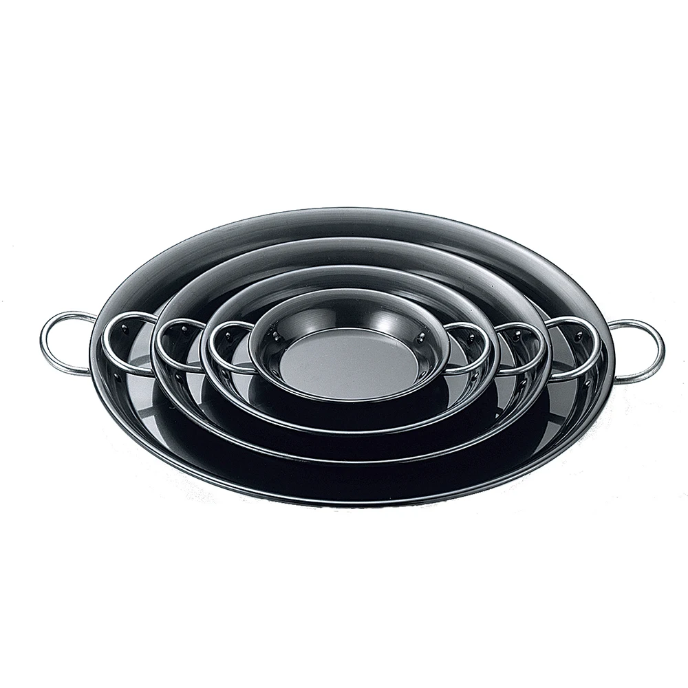 Notice: As the result of being produced from repeatedly hammering five round iron sheets, the top-most layer of the product will have remaining hammer-marks, whereas the bottom-most layer will have remaining circular marks from the edge of the mold. While the skillets with hammer-marks are popular, please note that you will not be able to make the selection.