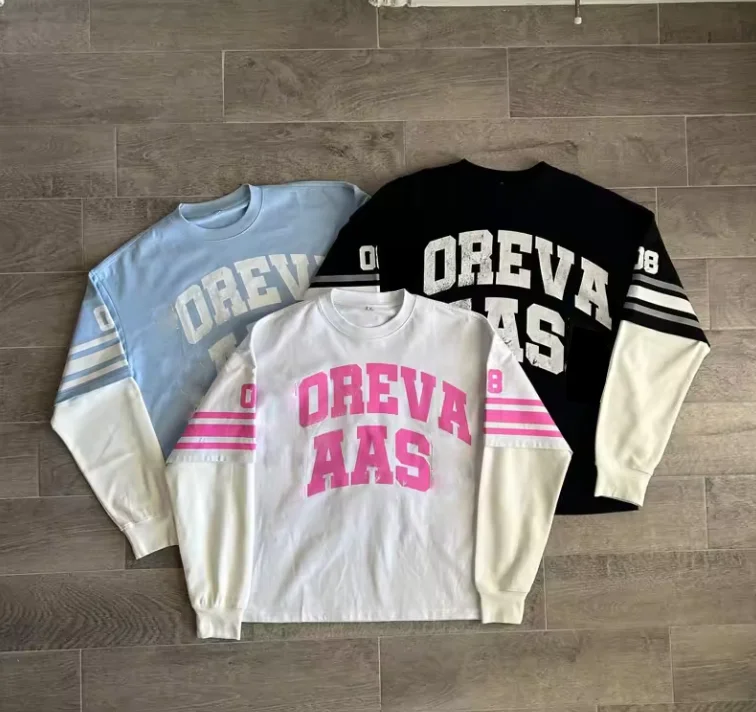 Футболка с принтом экрана на заказ винтажная хлопковая двухслойная длинная футболка вафельными рукавами для мужчин
