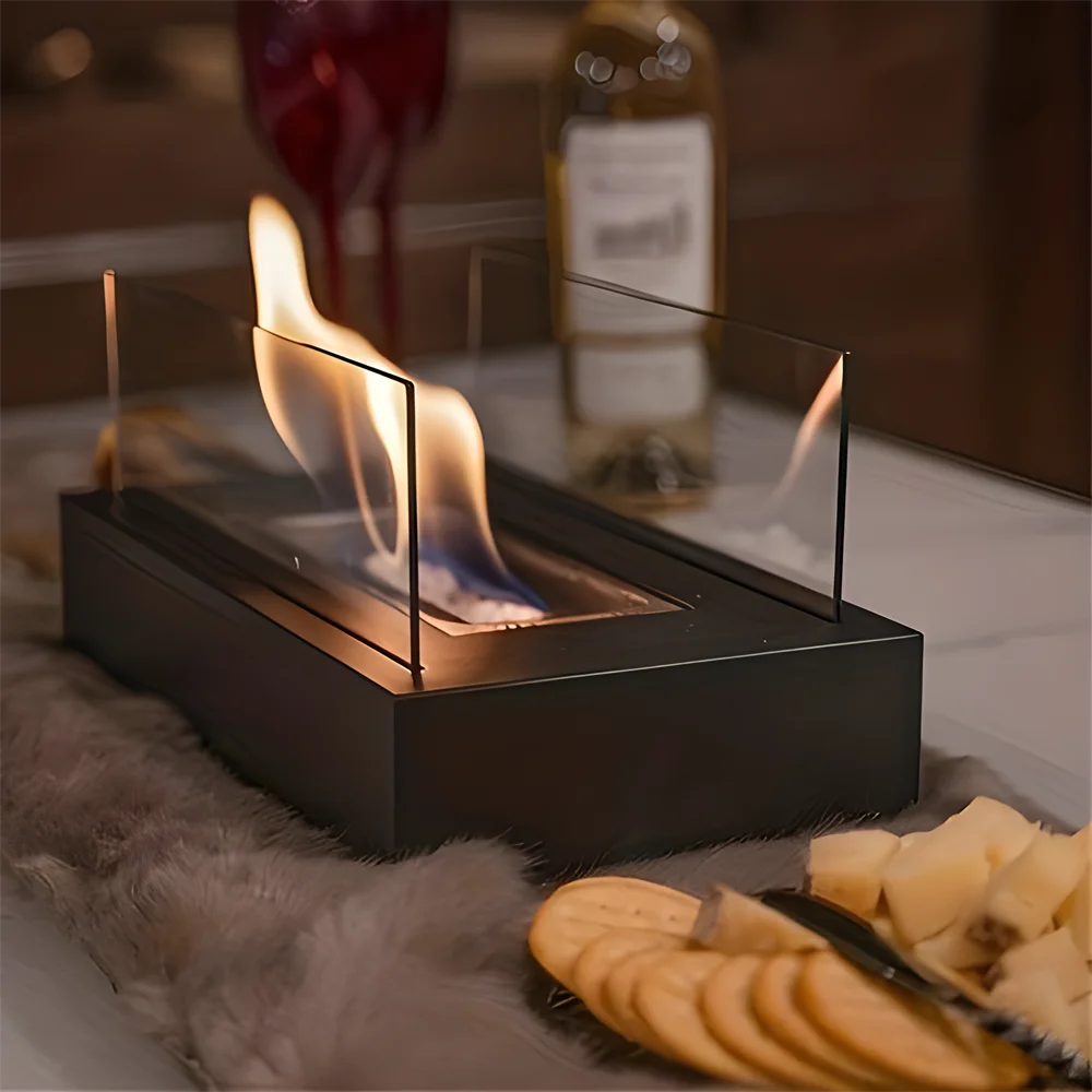 Черный портативный металлический Настольный камин спиртовая яма для костра комнатная наружная чаша без дыма настоящий пожарный