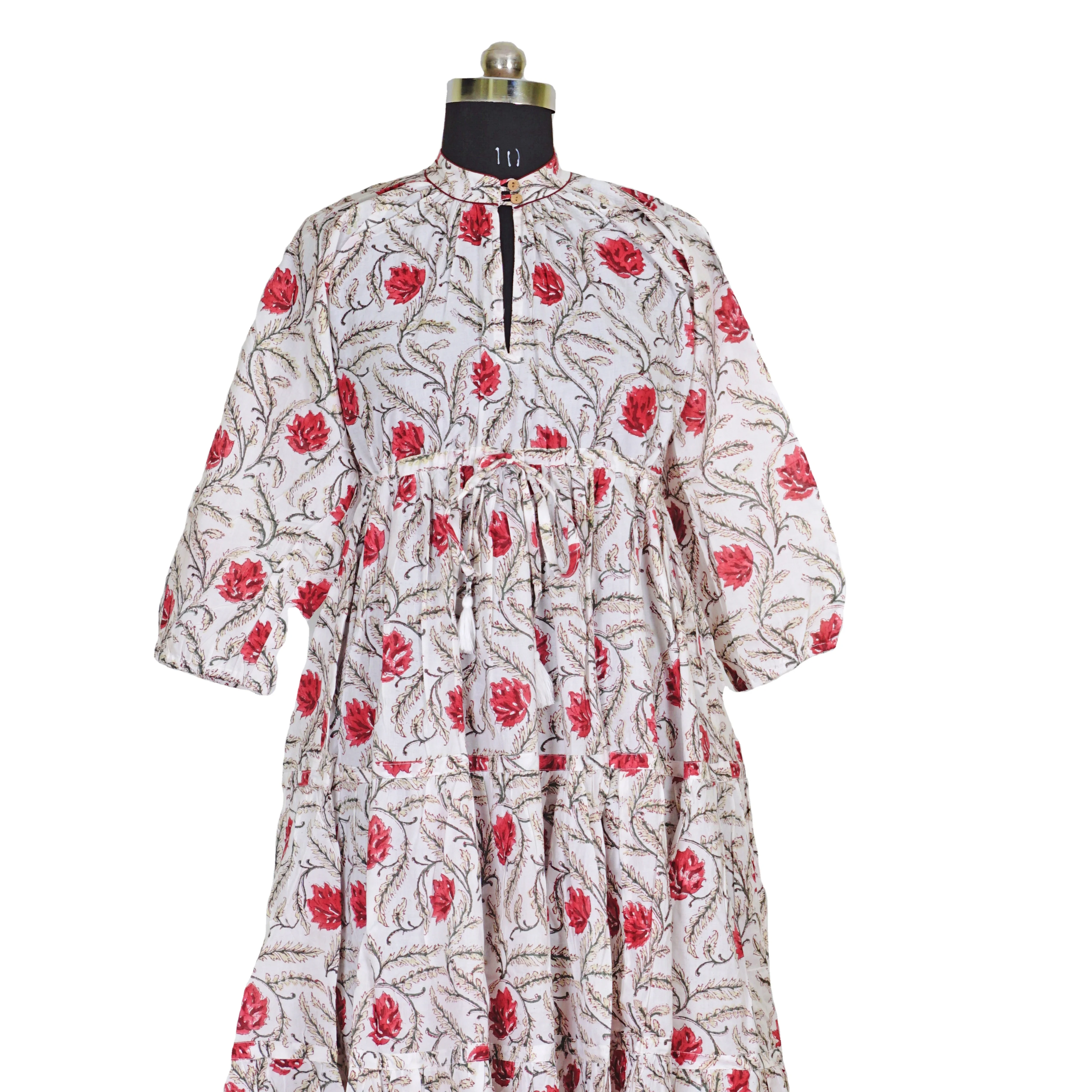Женское платье в богемном стиле индийское летнее хлопковое длинное ручной работы с запахом и юбкой цветочным принтом