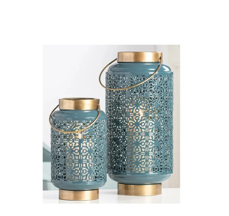 Новое поступление уличное украшение для дома отеля использование фонарей лампы с синим порошковым покрытием фонарь набором из 2 предметов