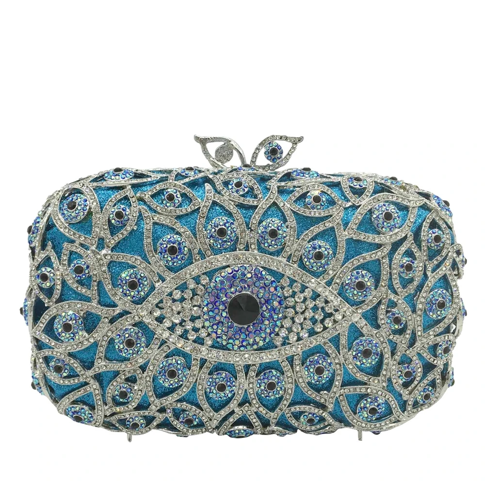 Роскошные Дизайнерские вечерние сумки с бриллиантами клатч банкетная сумка Женская Высококачественная синяя сумка-клатч изображением сглаза