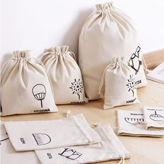 Экологичные тканевые подарочные мешочки на шнурке рекламные сумки заказ для бутика