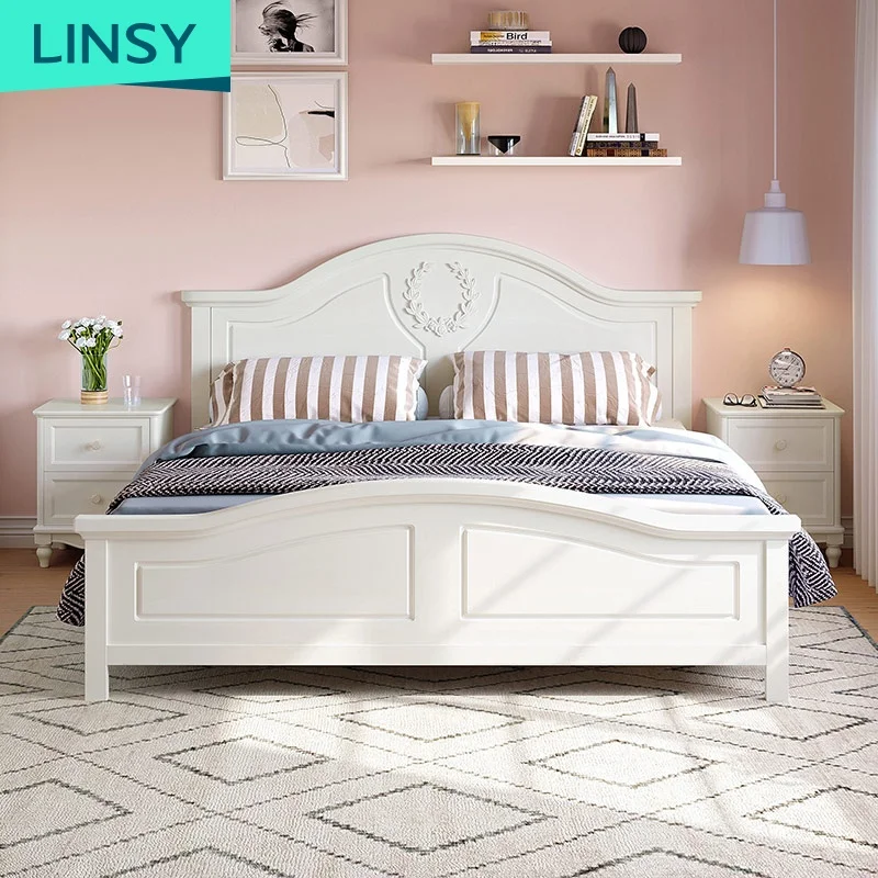 Двойной европейский кровать мебель для спальни из массива дерева современной 1 5 м белого минималистского цвета 8 метров дома мягкая панель