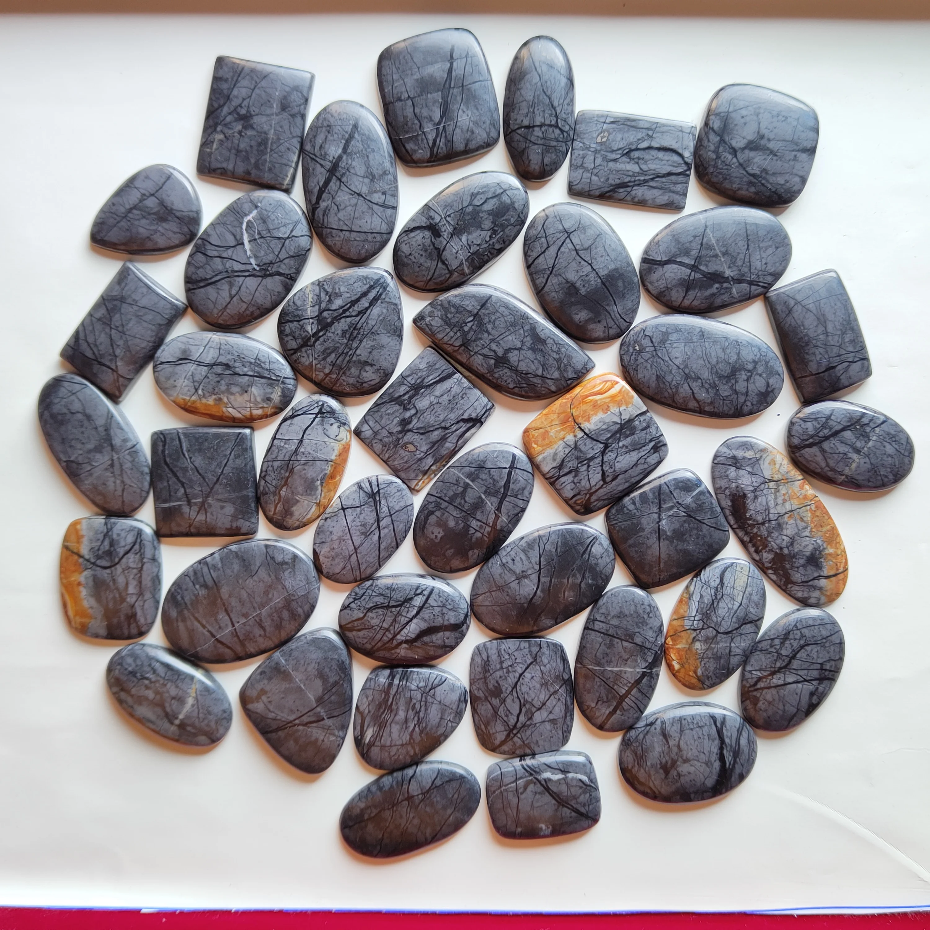 Blackline Пикассо яшма Незакрепленная ручная работа полированная 9 мм кристаллический кабошон высокий кварц натуральный кристалл изготовление ювелирных изделий белого и зеленого цвета