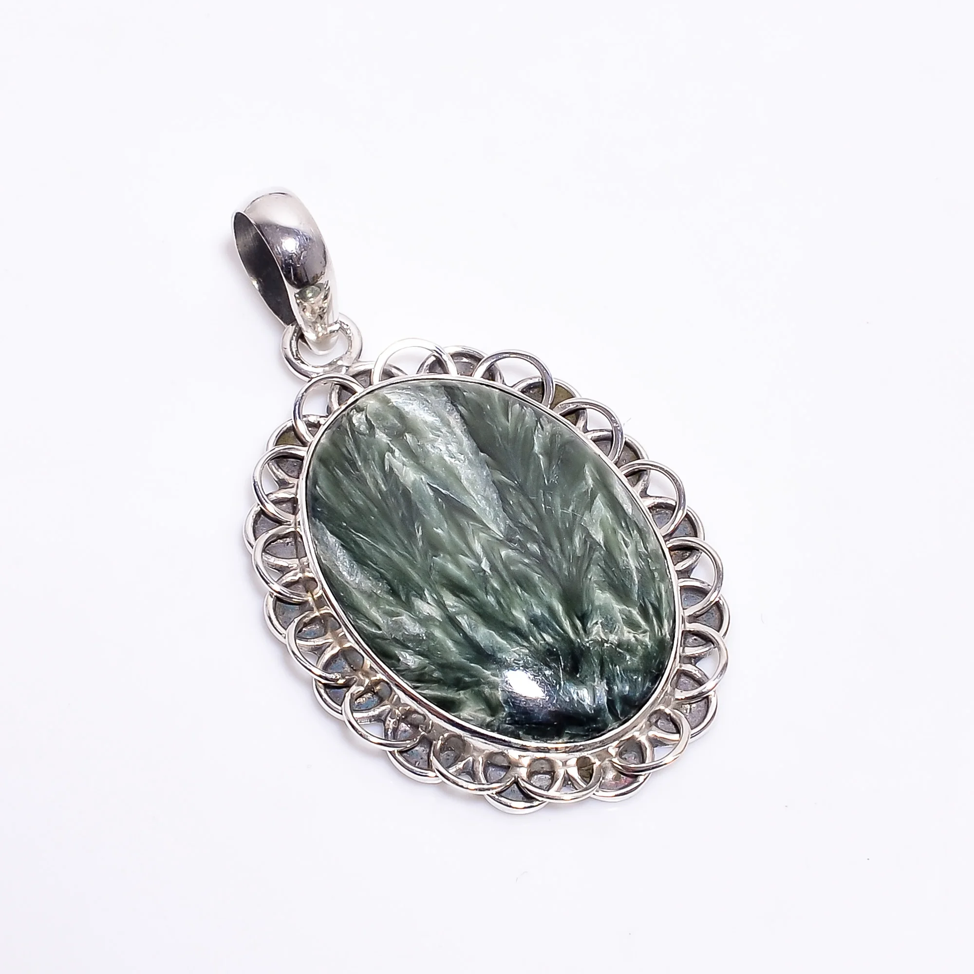 Ожерелье из 925 стерлингового серебра с бриллиантами и серафинитом