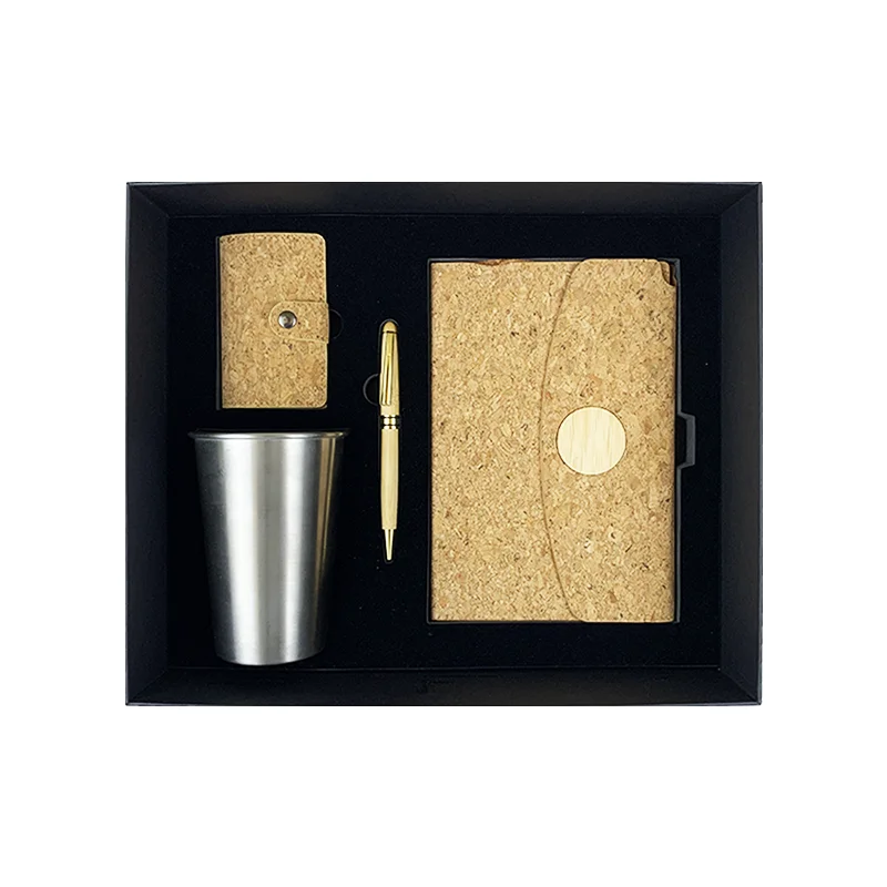 4 в 1 рекламный и деловой подарочный набор Бамбуковая деревянная тетрадь стальная кружка брелок шариковая ручка по доступным ценам