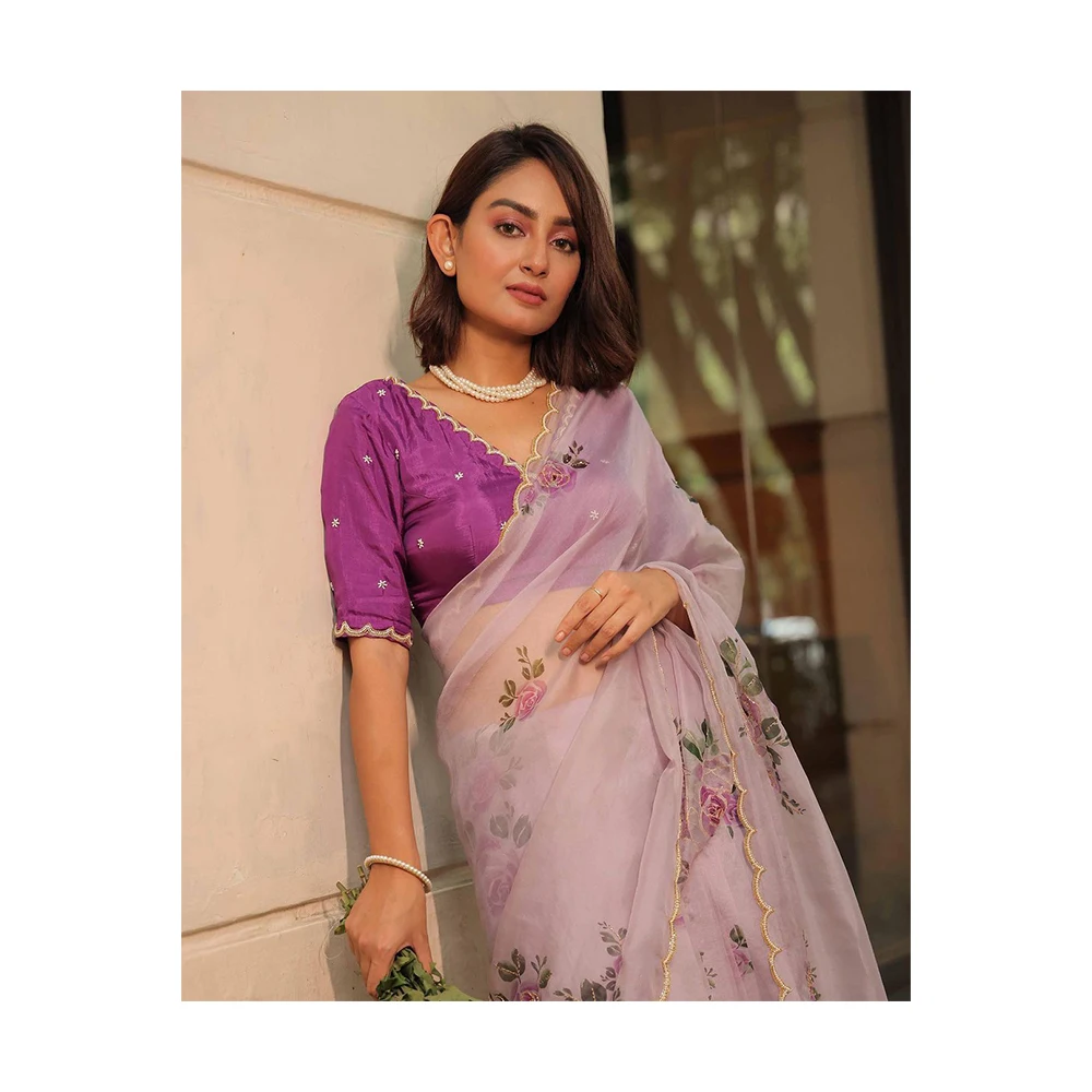 Блузка из жоржета с тяжелым сари лучшего материала самая красивая привлекательная одежда для женской вечеринки
