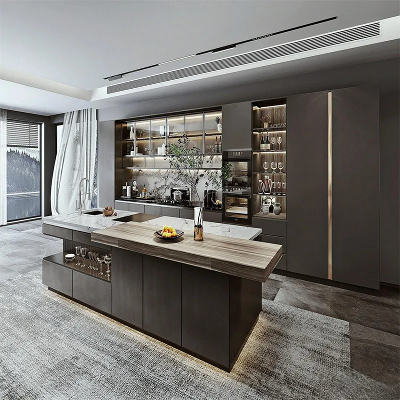 Лидер продаж современный L-образный китайский кухонный шкаф с островной панелью из массива дерева МДФ для домашней кухни 55 201,80 ₽ - 66 242,16 ₽