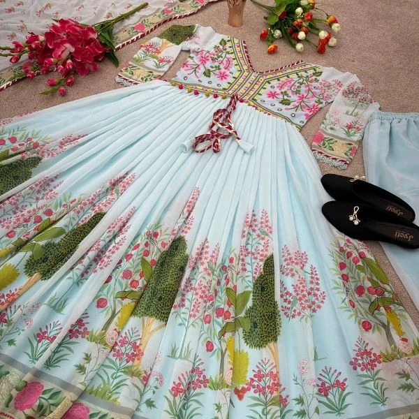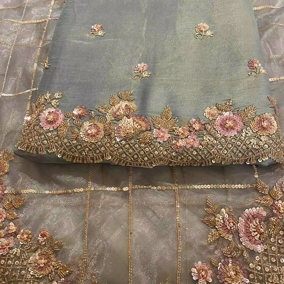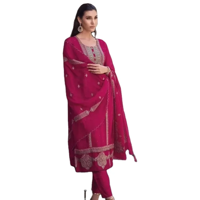 Современный дизайнер вышитые вручную непрошитые костюмы высокого качества шелковая индийская Пакистанская Свадебная вечеринка причудливая модель с принтом