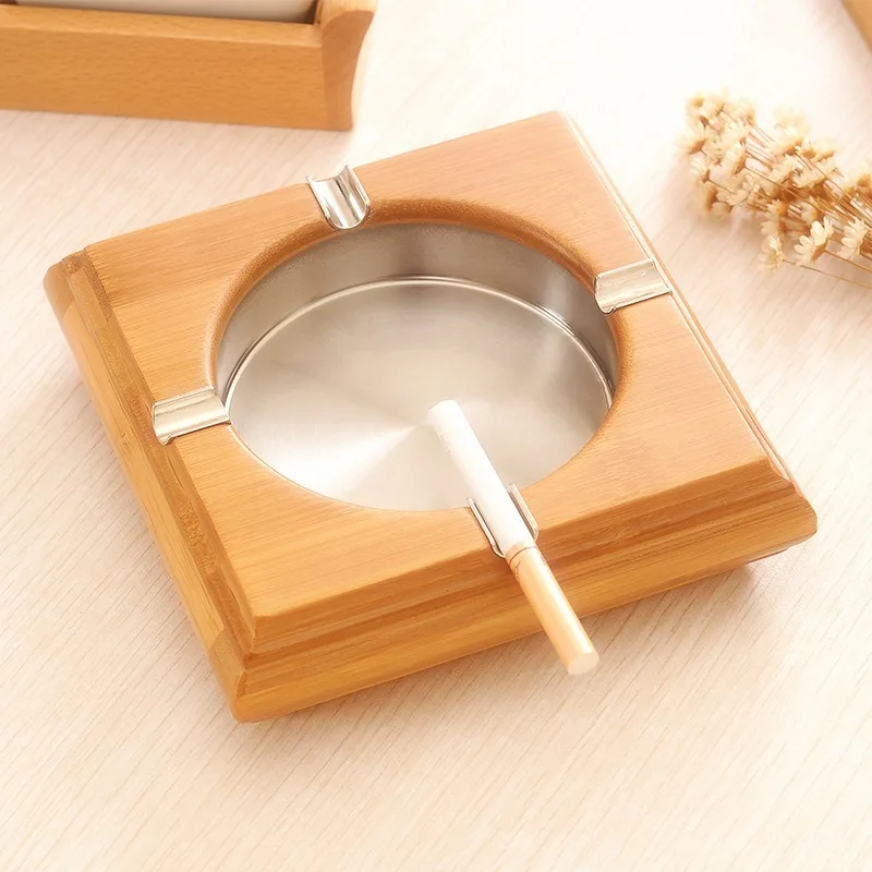 Деревянная пепельница ATY146 из нержавеющей стали ветрозащитный с крышкой для домашнего офиса легко моется