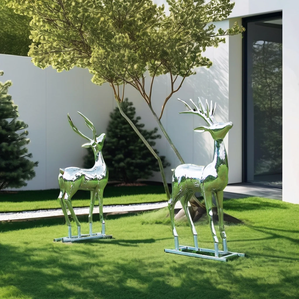 WAVERLY дизайн под заказ красивая современная металлическая художественная статуя животного оленя отполированная скульптура в натуральную величину из нержавеющей стали для продажи