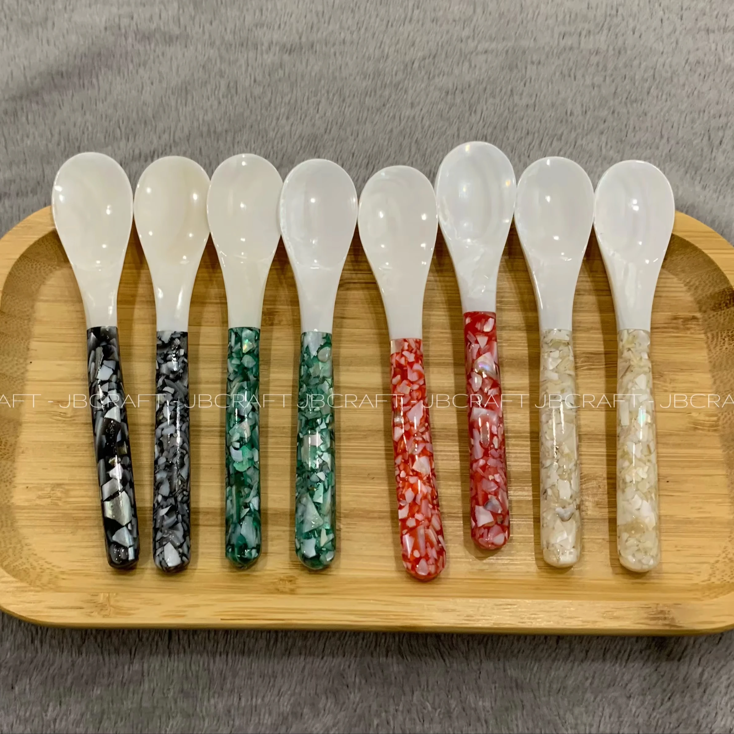 Unique Design White Mother of Pearl Spoon Caviar Serving Coffee Scoops Mix Mica a New Style in Size 12cm