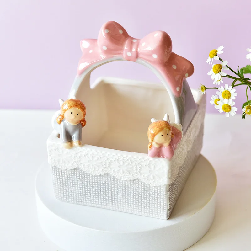 Американский Свадебный ангел День Святого Валентина корзины для хранения розовое сердце керамическая корзина контейнеры украшение