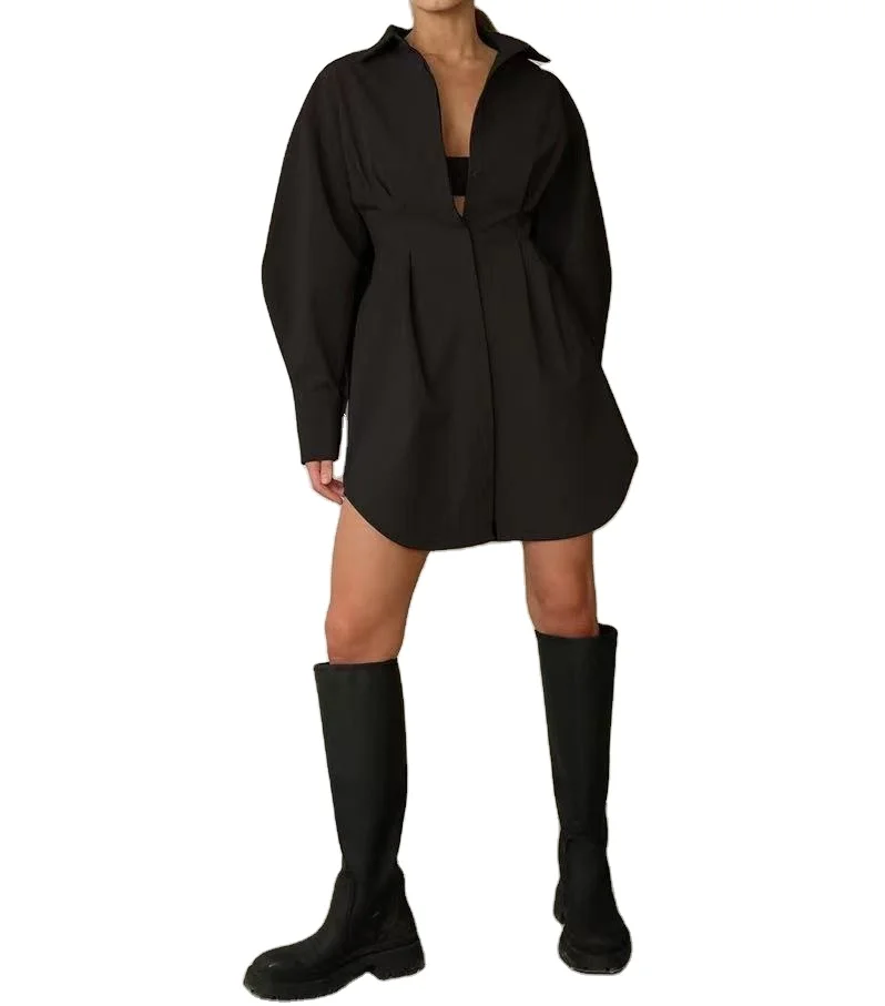Новая модная французская Однотонная рубашка с длинными рукавами юбка трапециевидного силуэта Простые короткие облегающие платья Повседневная Уличная одежда для женщин