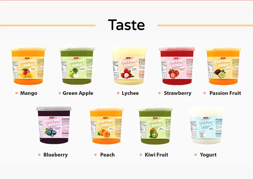 Flavor | Mango/Lychee/Strawberry/Green Apple/Peach/Blueberry/Passion Fruit/Kiwi/Yogurt |