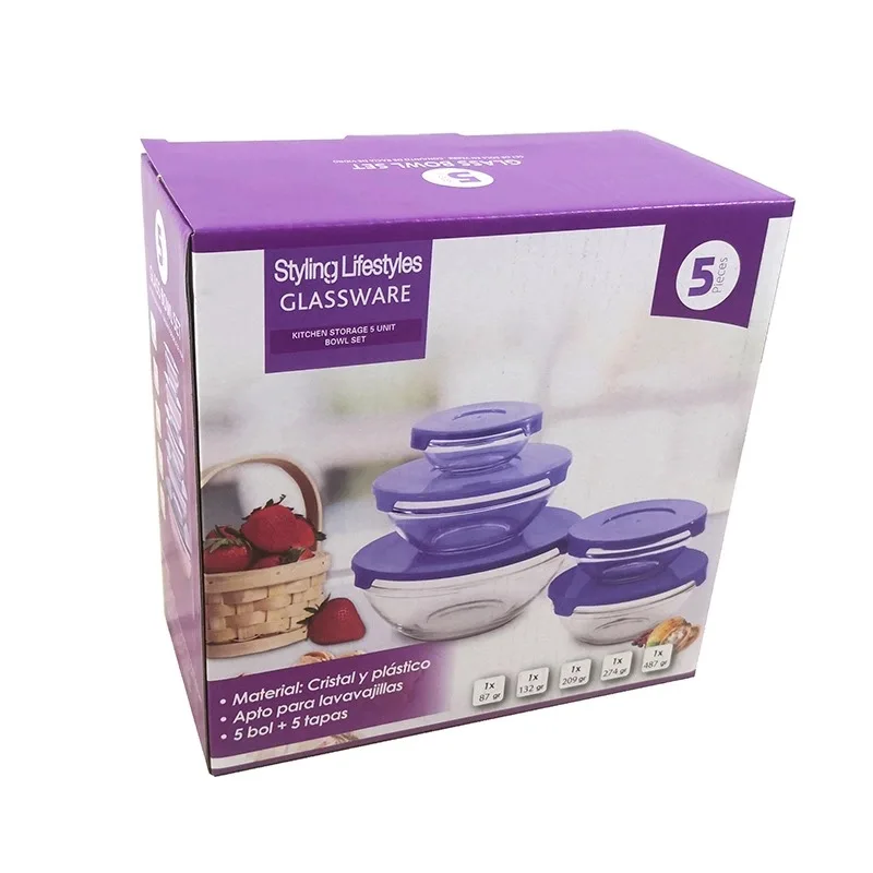 Кухонная прочная прозрачная миска, набор из 5 стеклянных чаш для смешивания салата для дома