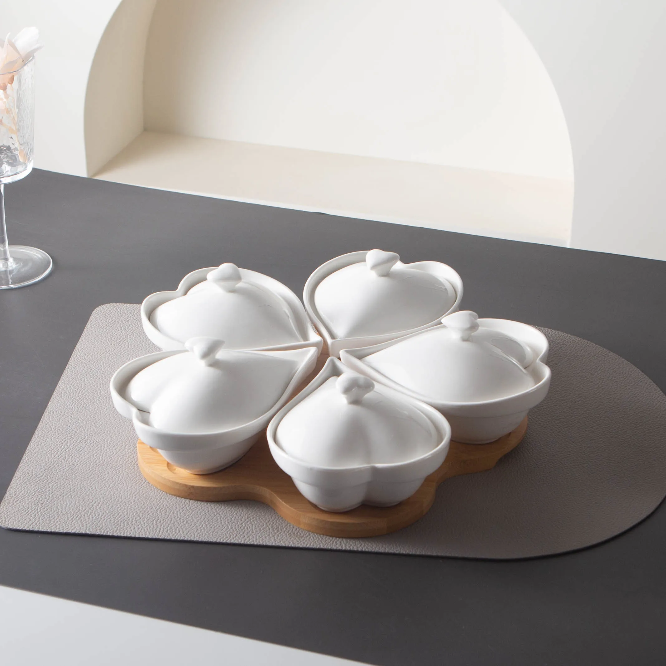 Набор фарфоровых кукурузных орехов с бамбуковой подставкой, Минималистичная белая керамическая сервировочная миска для закусок, набор