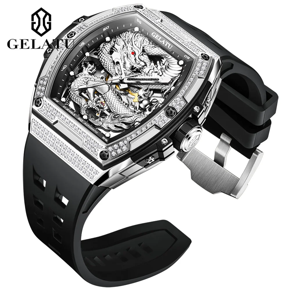 Часы Dragon деловые спортивные в форме бочонка 316l корпус из нержавеющей стали с вырезами механические часы