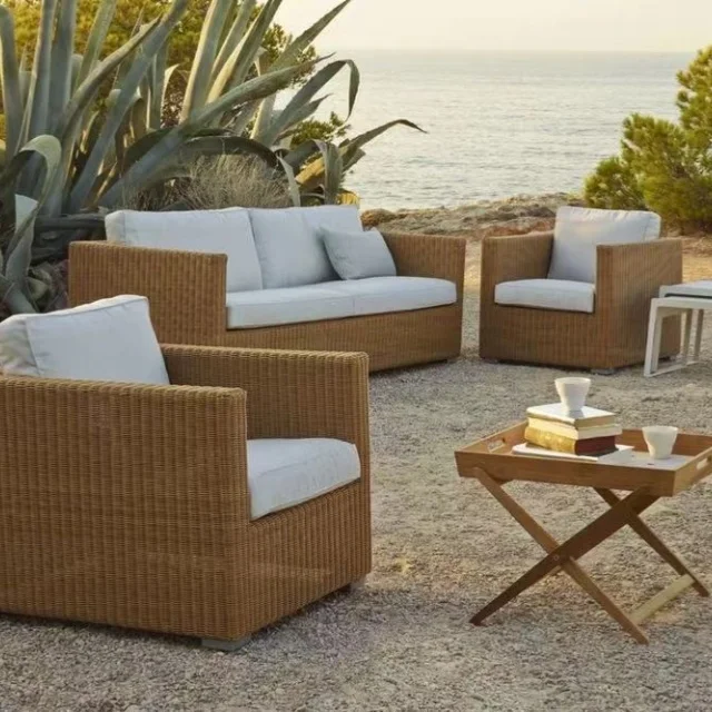 Более дизайнерская Водонепроницаемая мебель с подушками гостиная балкон патио отель из Тикового ротанга Плетеный секционный садовый диван на открытом воздухе