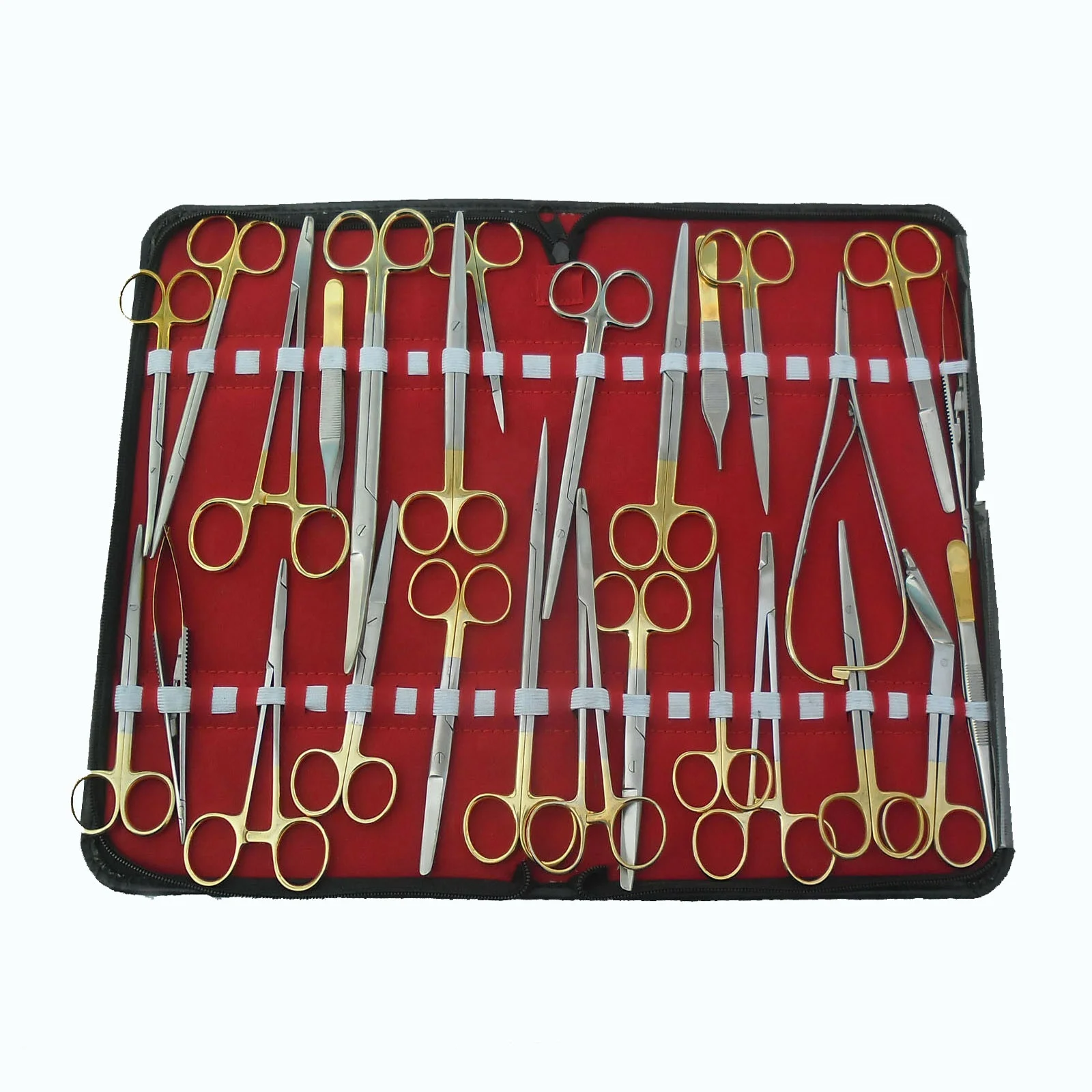 Немецкий стандарт высококачественный хирургический базовый набор инструментов для общей хирургии с золотой ручкой и сумкой