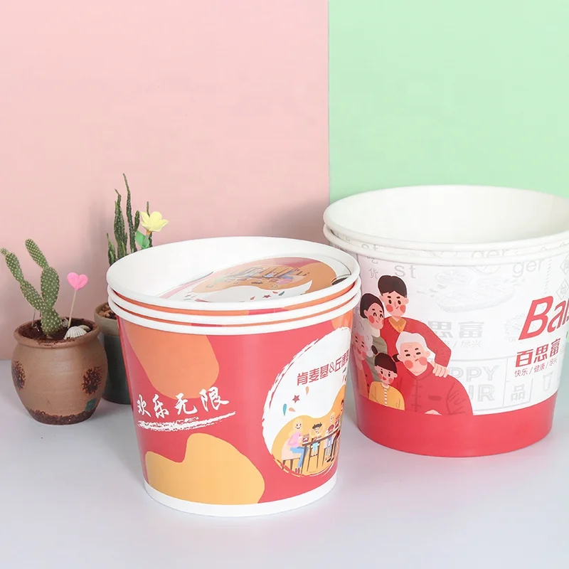 Лидер продаж одноразовые бумажные ведра с крышкой и покрытием из ПЭ или пла для курицы логотипом 0,02-0,03 $