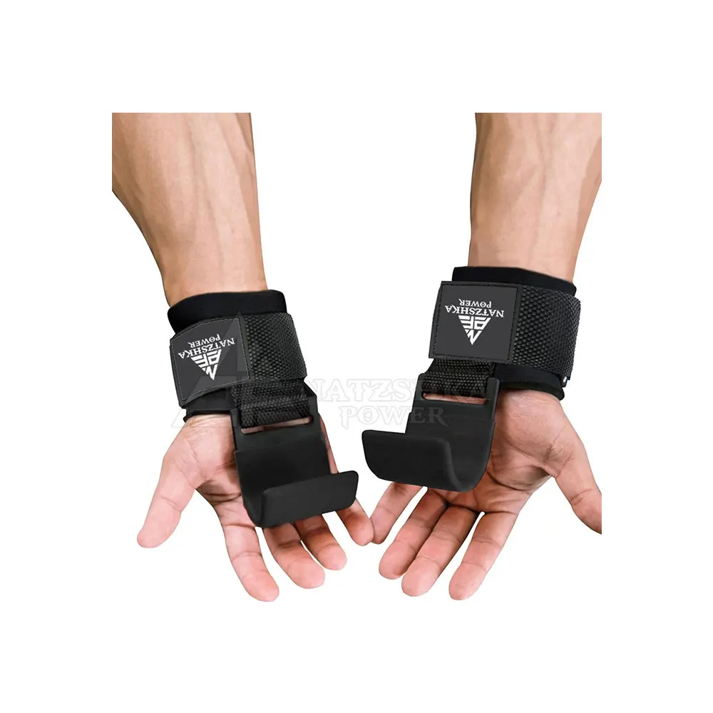 Оптовая продажа, крючки для занятий фитнесом, крючки для тяжелой атлетики, ремни для поддержки запястья, черный крючок для тяжелой атлетики