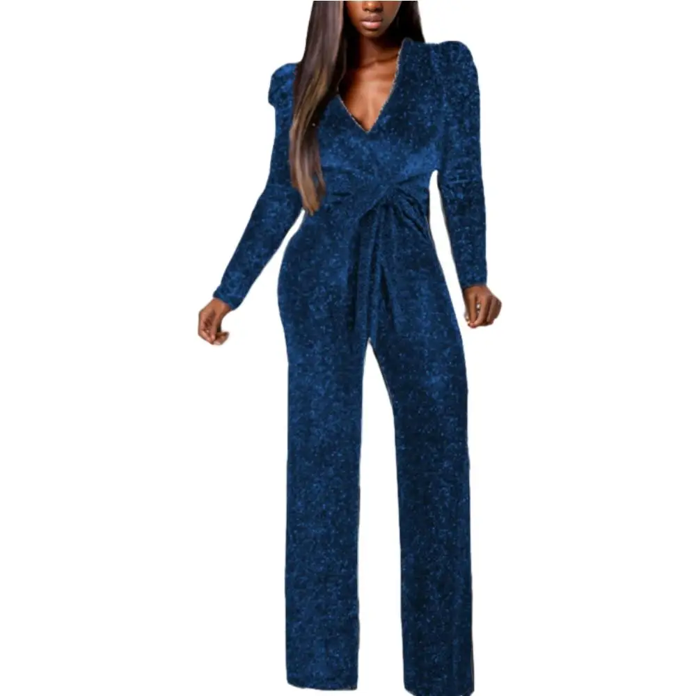 10802-MX97 свободный цельный комбинезон с V-образным вырезом и широкими штанинами для женщин Sehe Fashion
