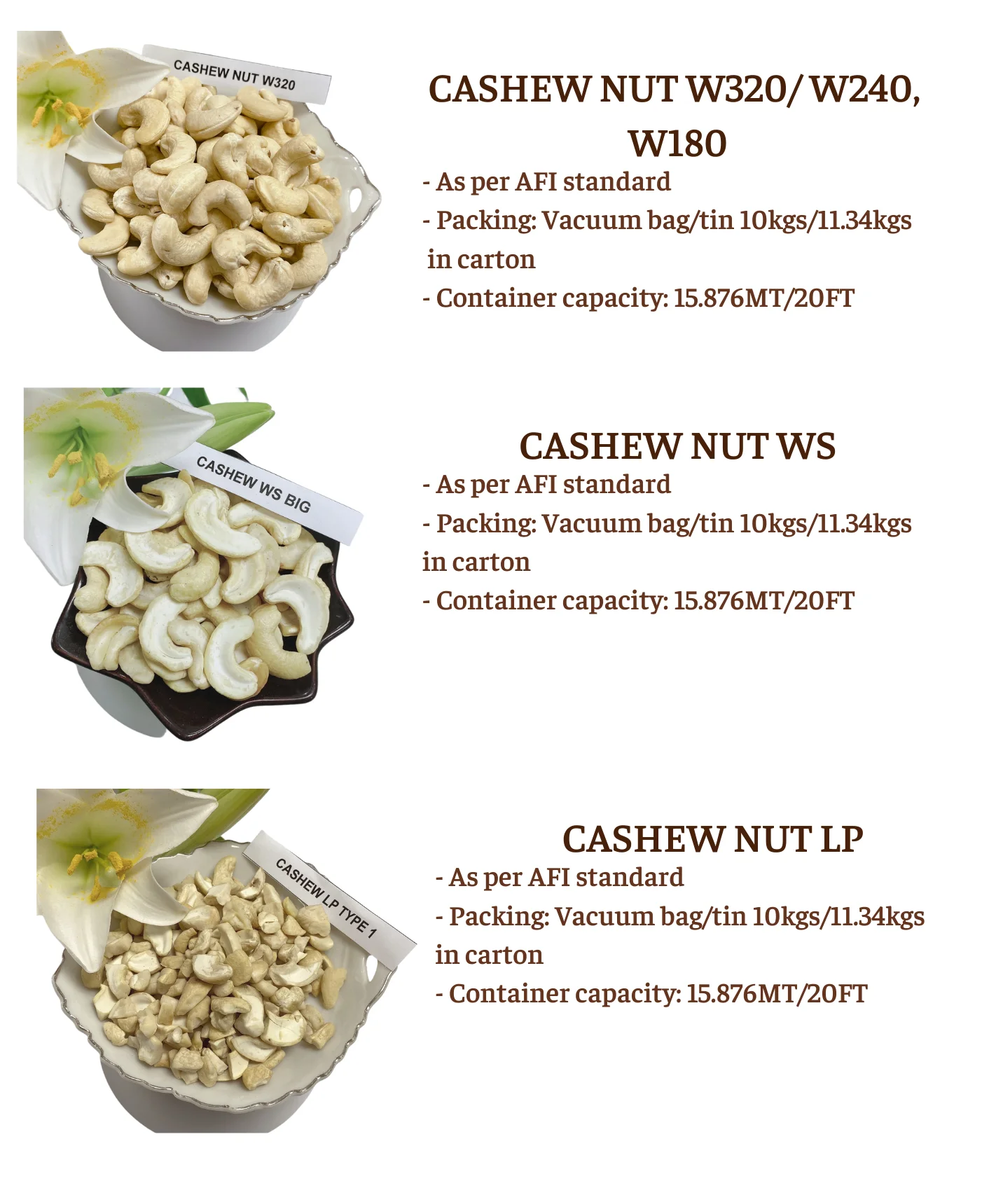 PACKING | CARTON 5/10KGS NET | CARTON 5/10KGS NET | CARTON 5/10KGS NET |