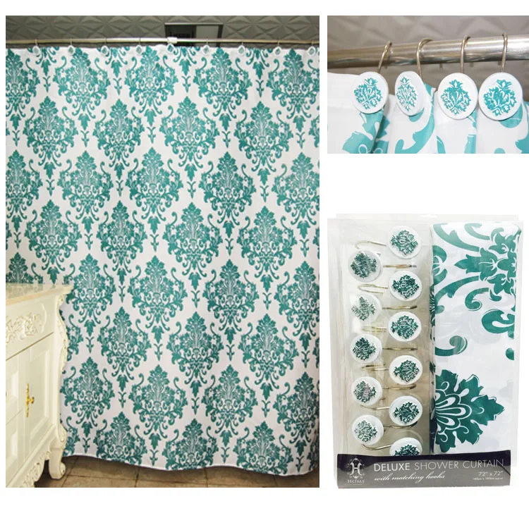 Роскошная занавеска для ванны и душа из полиэстера с принтом и крючками