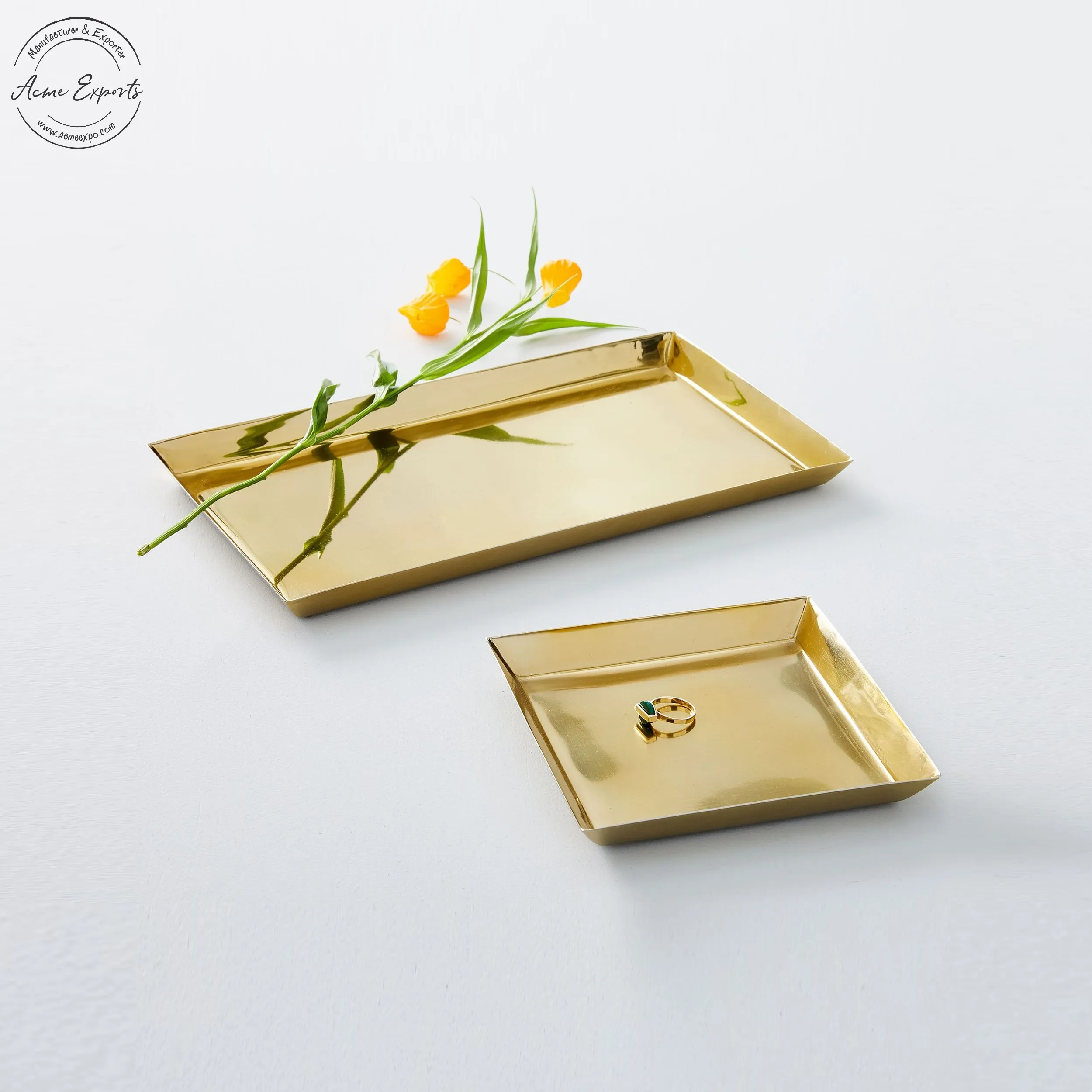 Современный дизайн оптовая продажа набор из 2 прямоугольных латунных подносов с матовой отделкой используется для декора обеденного стола сервировочного десерта