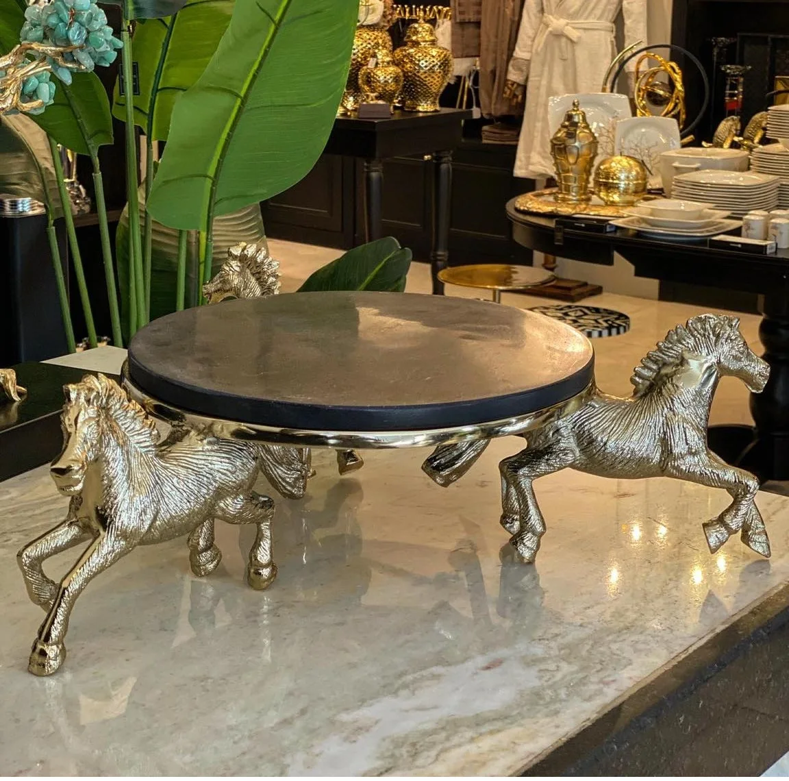 Новый поднос для сервировки торта из черного мрамора с 3 золотыми подставками коня закругленный мраморного печенья украшения стола